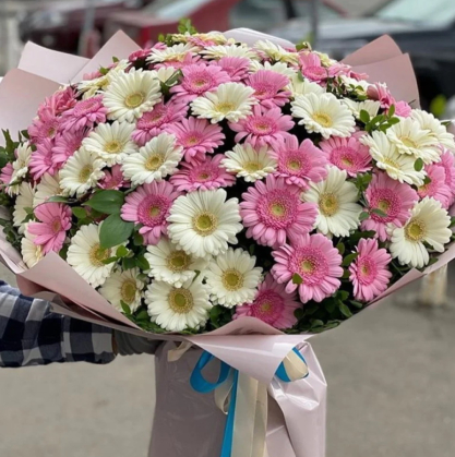 Букет из 101 белой и розовой герберой | Купить в Бали