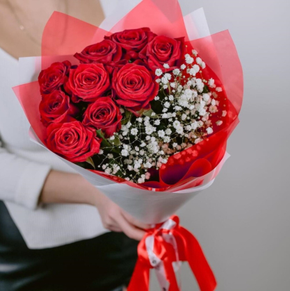 Букет из красных роз и белой гипсофилы — это классика, воплощённая в элегантной композиции. Яркие бархатные розы в окружении воздушной гипсофилы смотрятся особенно эффектно и торжественно. Такой букет станет достойным украшением любого события, подчеркнёт важность момента. Идеальный выбор для тех, кто ценит стиль и изысканность.